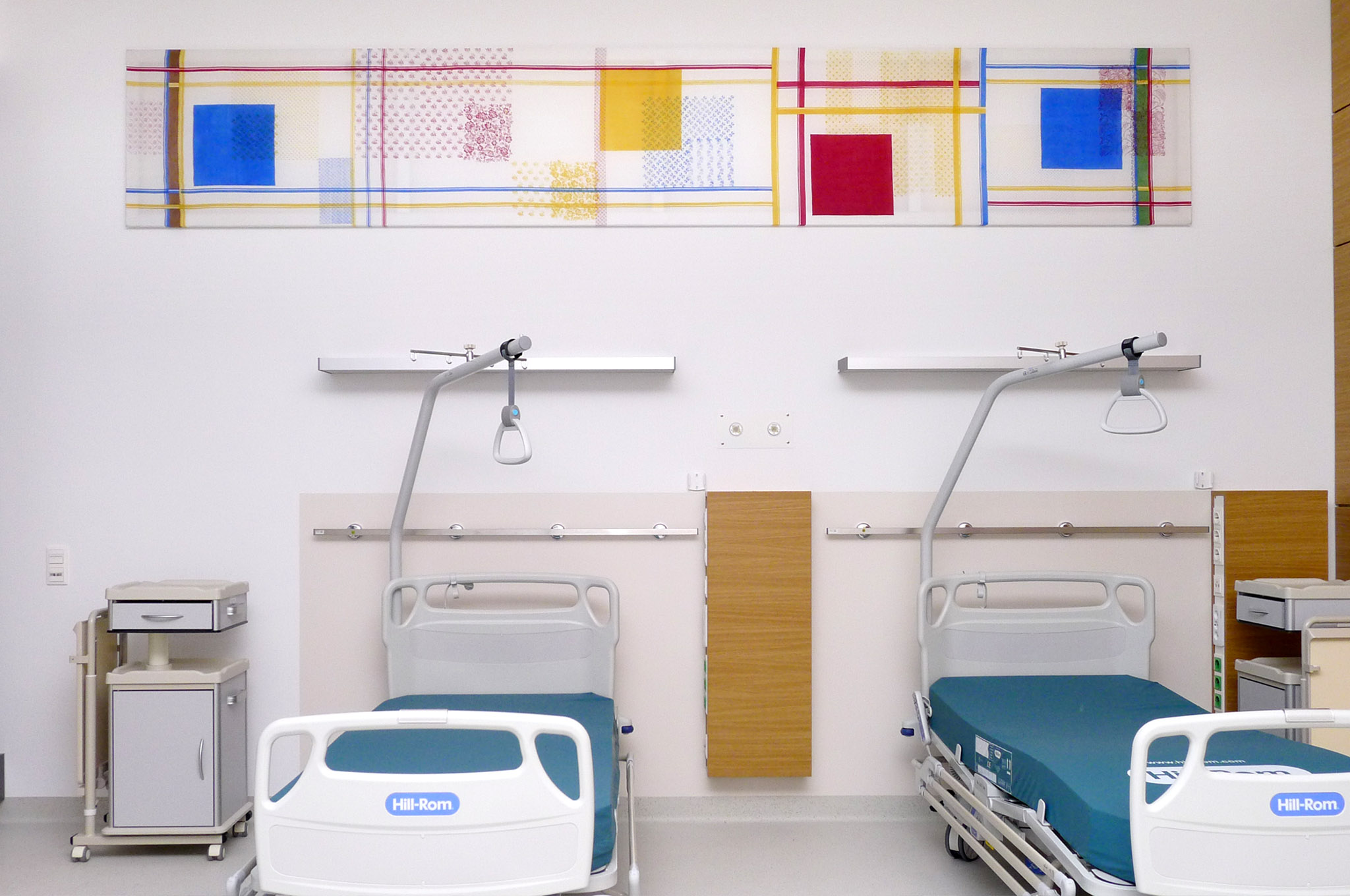 The aim for the artwork was to connect the different parts of the building designed within 100 years, and to pay attention to the history of the building which led to this collage type appearance.