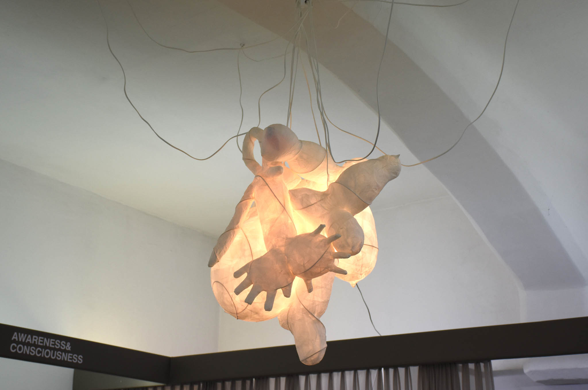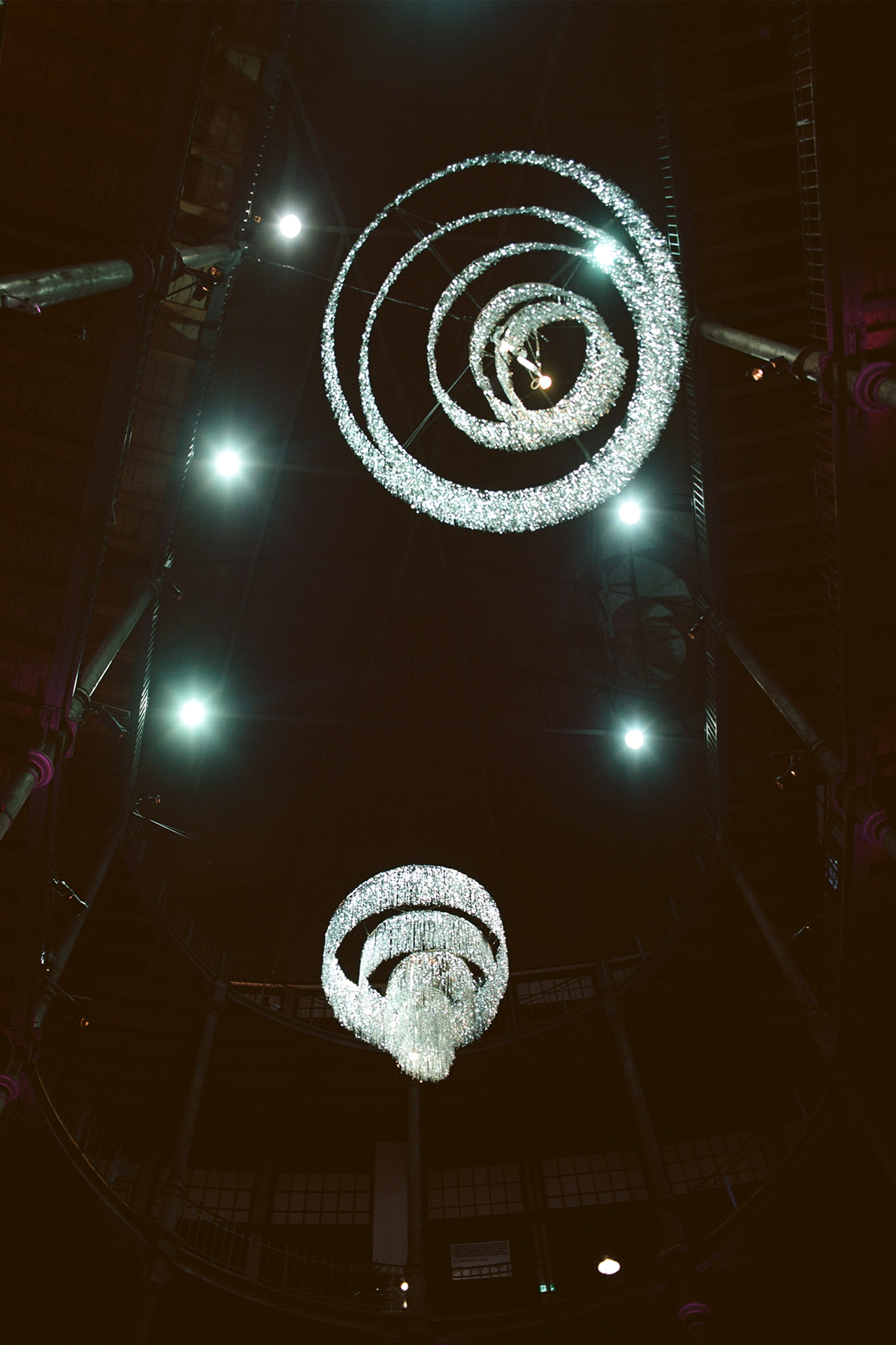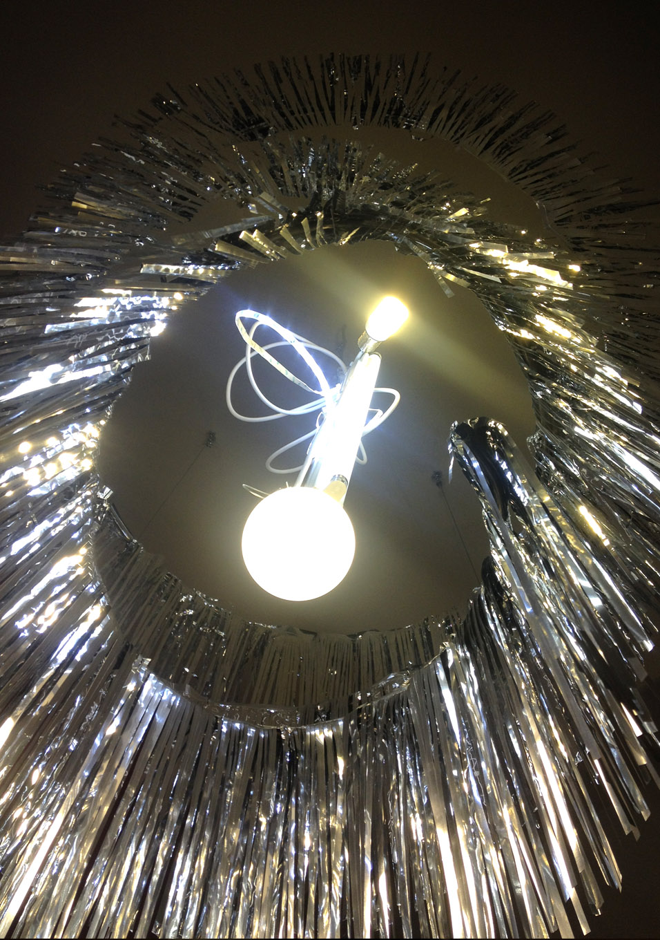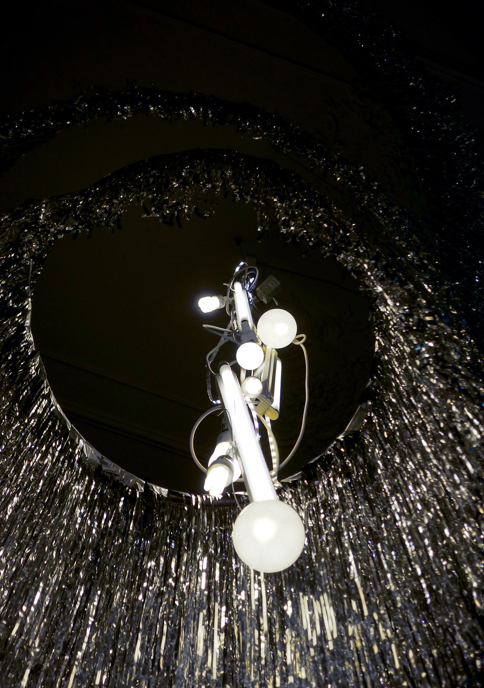 For the restoration of the Sofiensäle in 2013, Gorkiewicz designed a model of a chandelier that referred to Appel’s postwar creation. The work realigns a contemporary decorative chandelier; an object that is normally cheap and for temporary use.Each chandelier maybe viewed as an individual sculpture due to its dimensions and location within the space.